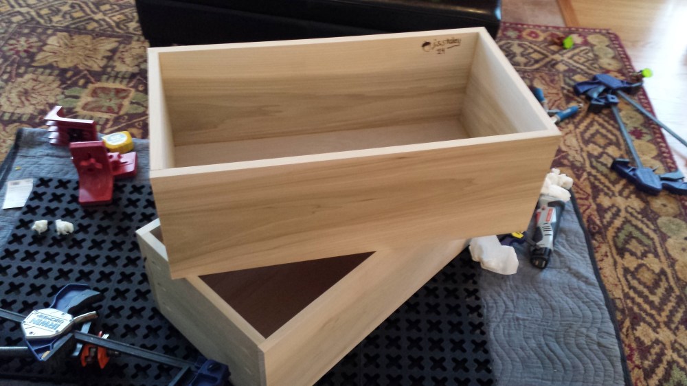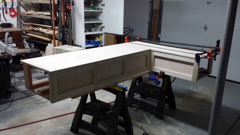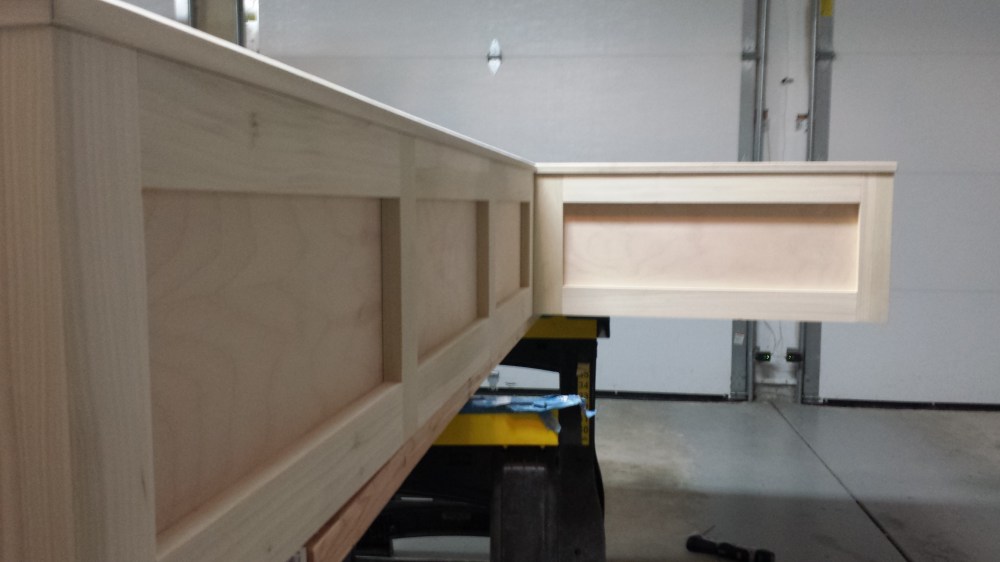 In a previous post, you can see how I created a Farmhouse table with drawbore breadboard ends. Of course, to be of any use, this table needed seating. In order to have the most flexible seating, while adding some drawer space, I built this banquette with two fully extendable drawers. Also, in order to prevent the loss of electrical outlets, this banquette includes a plug in outlet on the underside with both outlets and USB charging.
