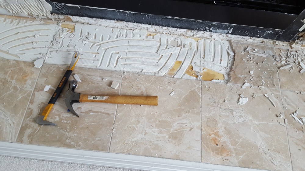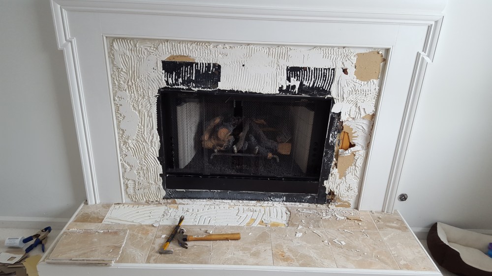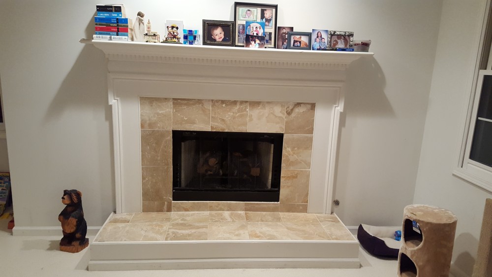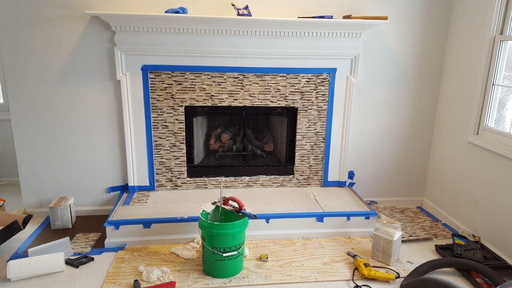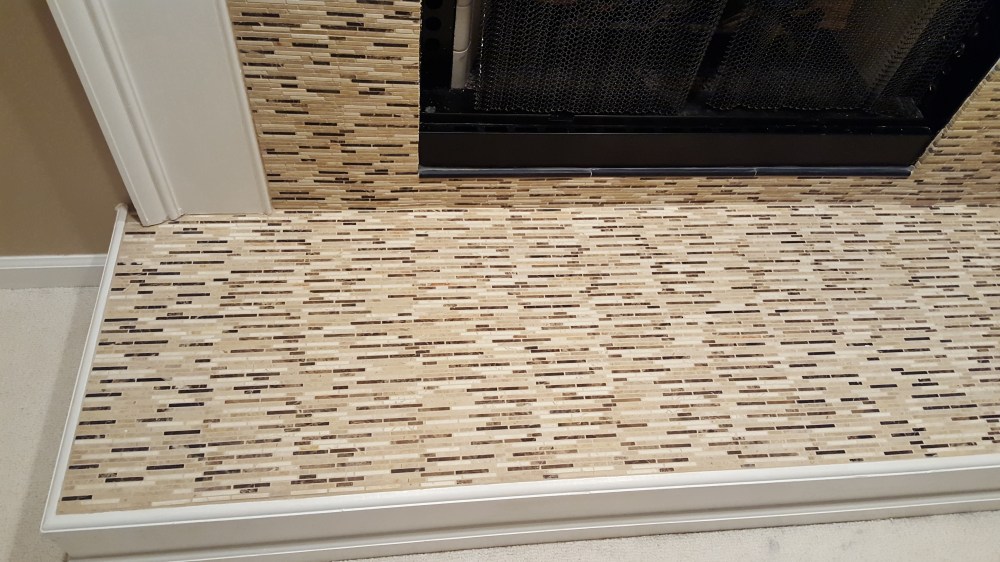 Our Master bedroom fireplace was originally finished with marble tiles. Some of the tiles were cracked, and we wanted a new look. We found a good mosaic, and I wanted to try tile work. I pulled off the original marble, and rented a wet saw, and figured out how to lay tile, apply grout, and seal the stone.